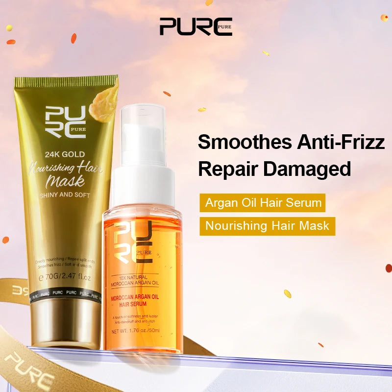 A luxurious duo for smooth, glossy, and nourished hair. Powered by Moroccan Argan Oil, 24K Gold, and Keratin, this set restores strength and shine to damaged strands while leaving hair silky soft