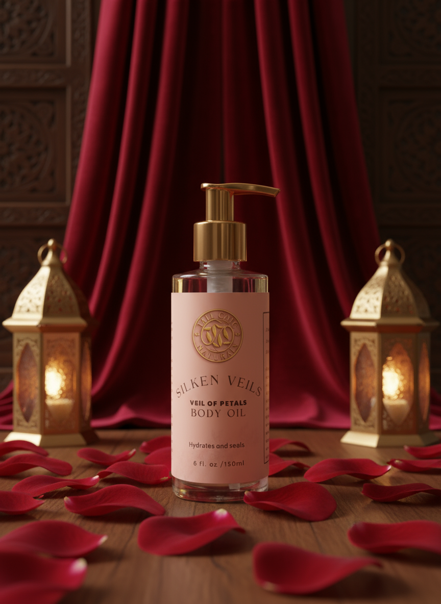 A whisper of ancient beauty. Veil of Arabia wraps the skin in a romantic fusion of Damask rose and oud, deepened by the golden warmth of amber. The result is a timeless veil that glows with sensual grace; rich, regal, and undeniably alluring.